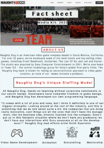 Created a media kit for Naughty Dog a popular video game company who has created some of the greatest games of our time.